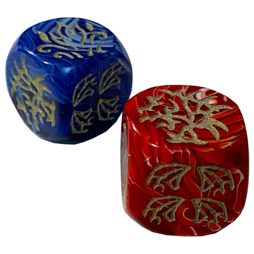 Dragonkin Champions- The ultimate dragonkin! The large Dragonkin Champions give the ultimate in power and protection to your armies. Two colors- blue and red. These have the SFR logo instead of the old TSR logo. Note also that they are in the "promo" plastic (marbled). The production dice to be found in the Eldarim Expansion: Dragonkin will be pearled.